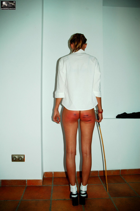 Having mostly been a good girl, Rosie had never been punished this way before, and she was scared and nervous from the moment she saw the thick, rattan implement. Being mostly good, she did not protest against the punishment she knew she deserved. Her round little bottom was soundly spanked until it glowed red through her white school knickers while she grimaced and whimpered. Then she was ordered to kneel up on the bed, presenting herself for the harsher discipline she required for being such a wayward, naughty girl.
